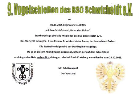 Am 01.11.2025 soll das nächste Vogelschießen stattfinden.