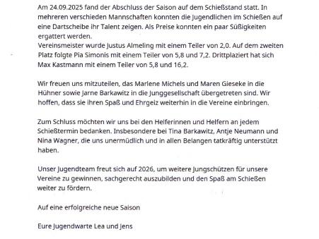 Bekanntgabe des Vereinsmeister der Jugendabteilung statt.